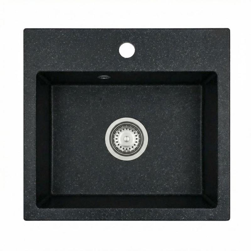 Graniteland Nera Évier en granit 45x42 cm Aspect pierre bleue Installation en surface avec trou pour robinet et bouchon en inox 1208971432