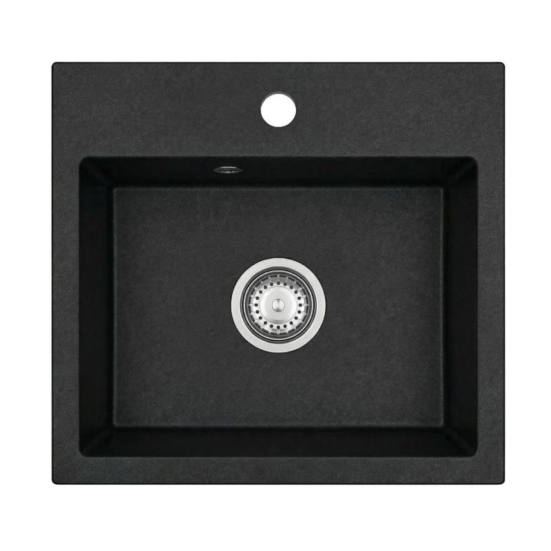 Graniteland Nera Évier en Granit 45x42 cm Noir à Encastrer avec Trou de Robinet et Bouchon Inox 1208969985