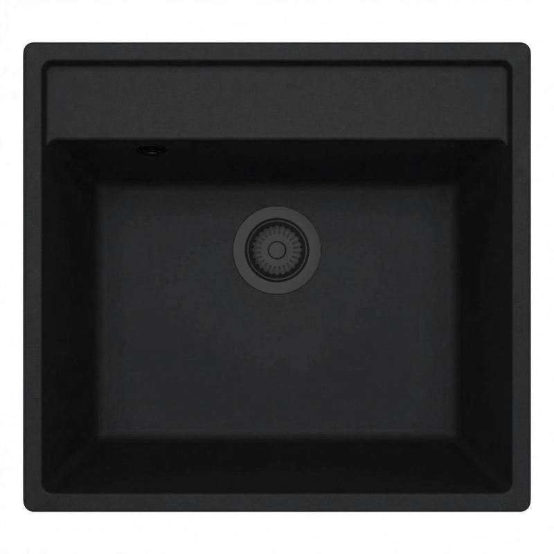 GraniteMy Bremen évier en granit 53x50 cm noir montage en surface sous plan et à fleur de plan avec trou de robinetterie banc 1208952256
