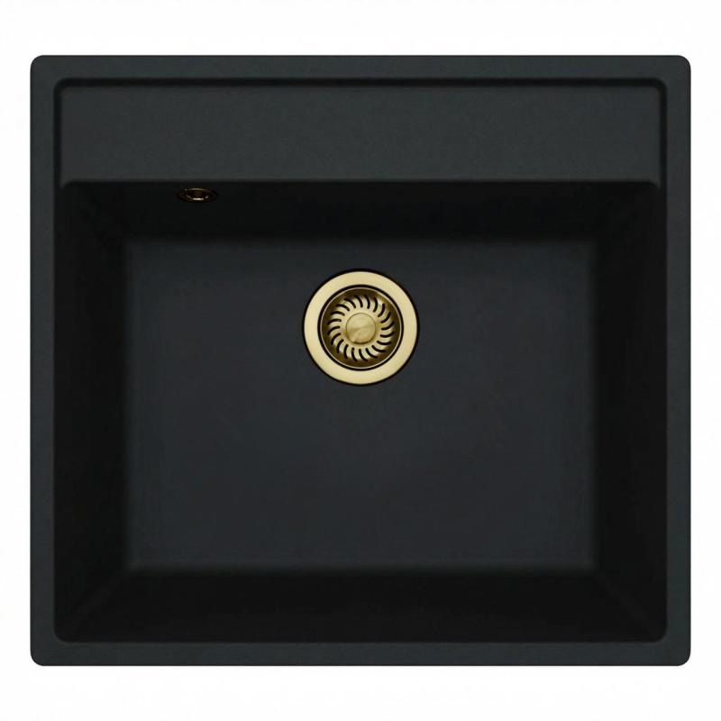 GraniteMy Bremen Granite Sink 53x50 cm Black – Top-mount, Undermount and Flush-mount with Tap-hole and Gold Plug 1208969969