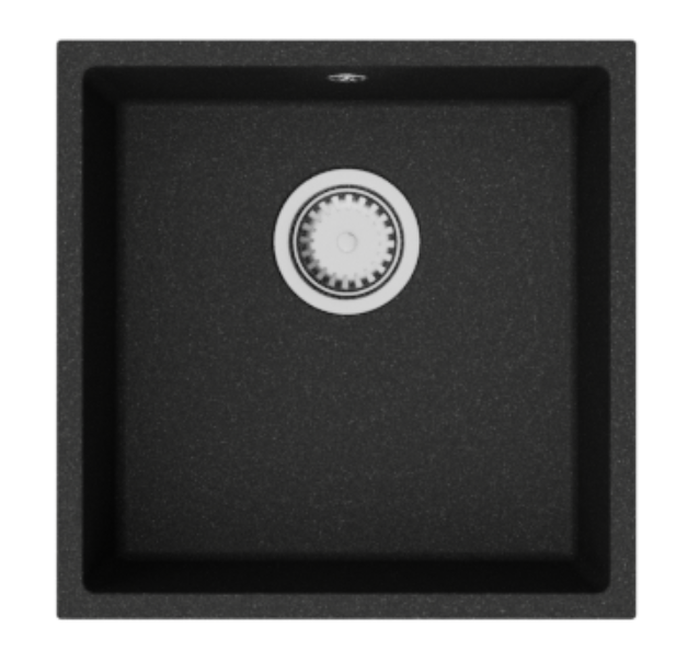 GraniteMy Évier universel en granit noir 40x40 cm noir montage en surface, en sous-plan et à fleur avec bouchon en inox 1208958318