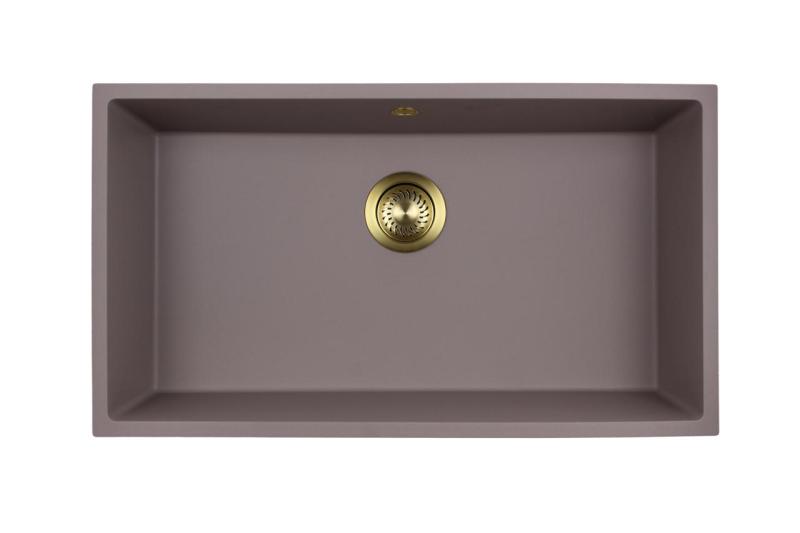 Un bouchon doré unique ajoute une touche de glamour à l'ensemble, faisant de votre cuisine un véritable accroche-regard. Malgré sa taille et sa polyvalence, l'évier ne comporte pas de bac d'égouttage, ce qui contribue à son look minimaliste et moderne.