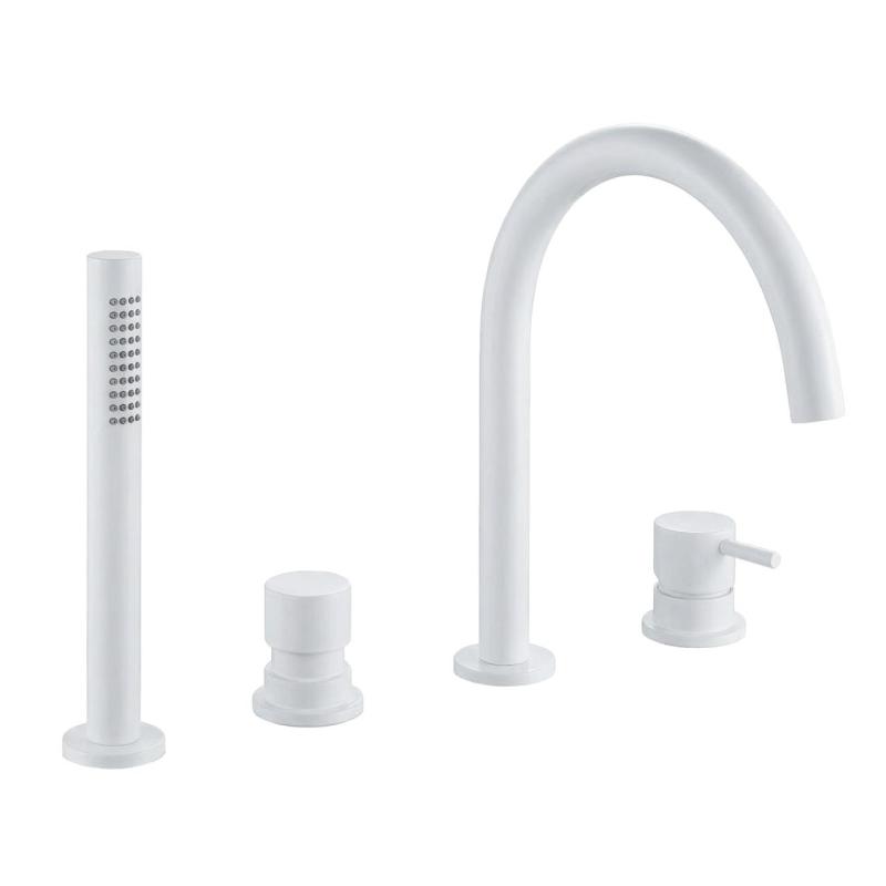 Waterevolution Flow Mitigeur de bain 4 trous pour montage sur le bord de la baignoire Blanc mat T138BR